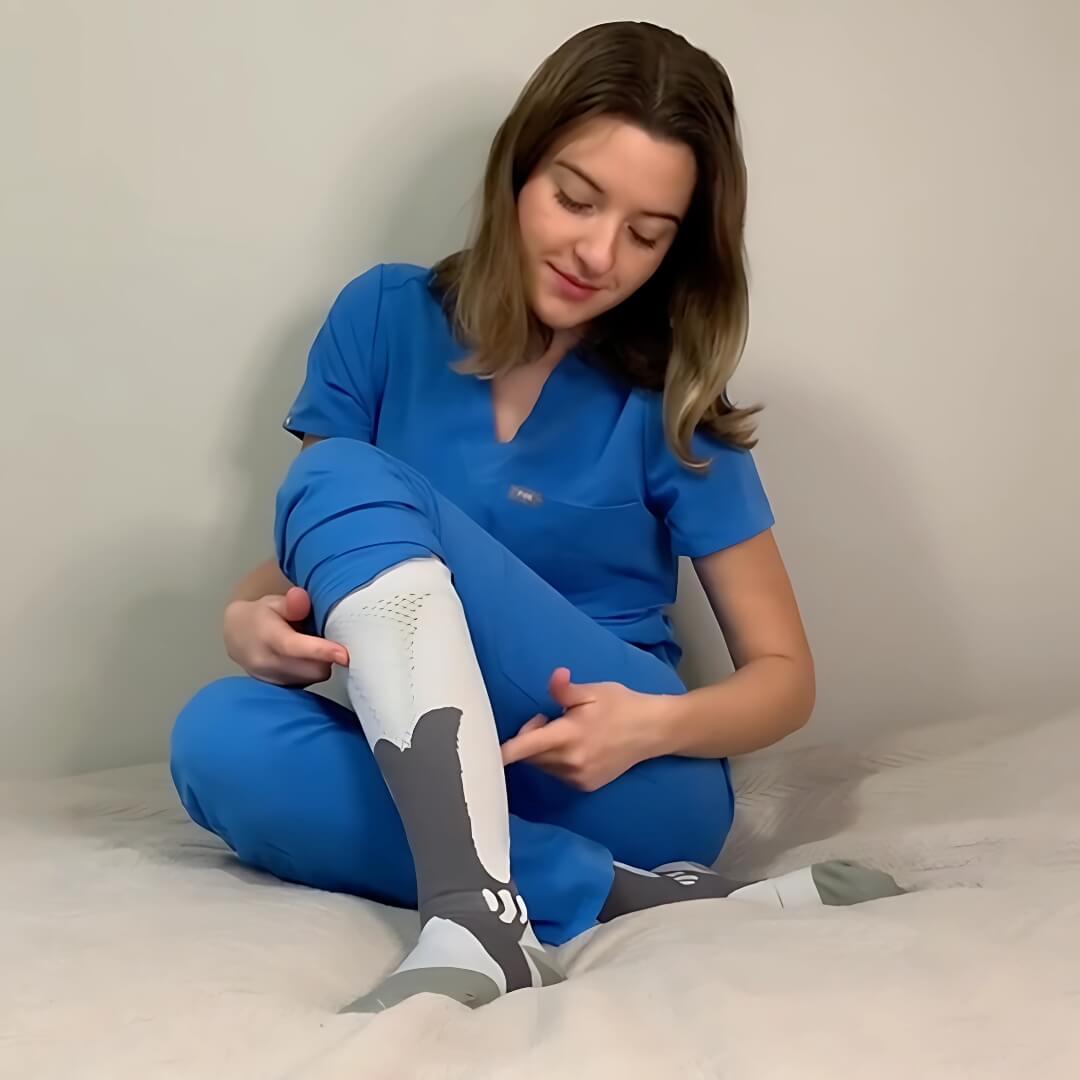 Le Calze a compressione Nursiv sono state create per gli infermieri, ma aiutano chiunque soffra di problemi legati all’accumulo di sangue e liquidi linfatici nelle gambe.